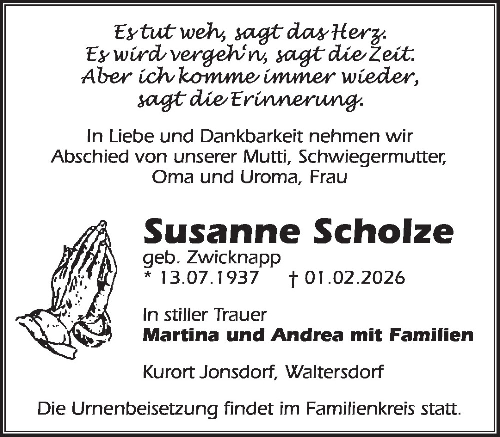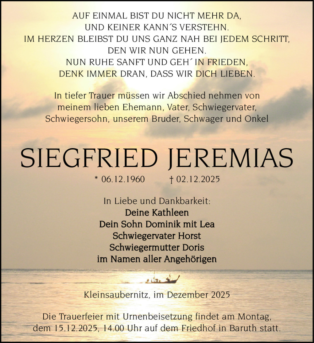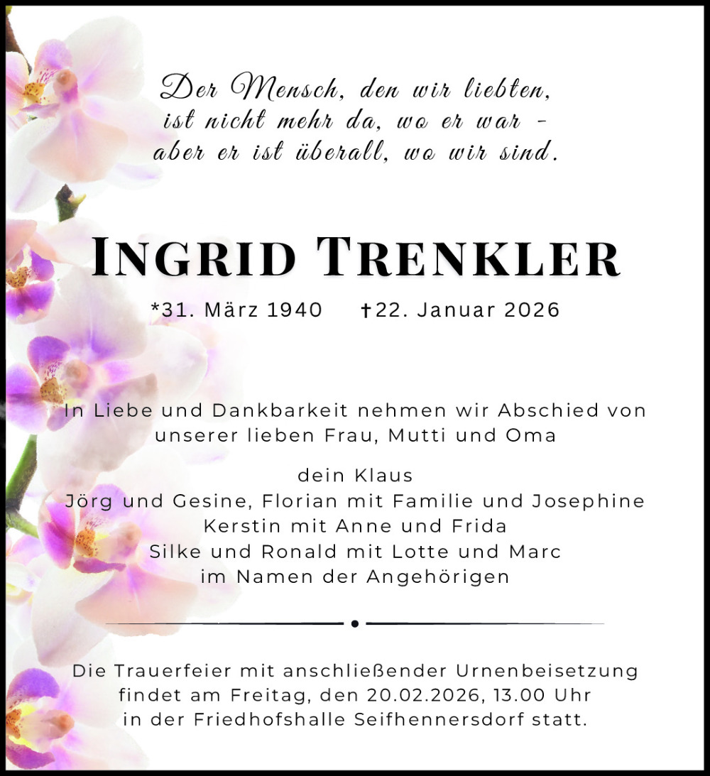 Familienanzeigen - Trauer